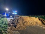 Gegen 23:00 Uhr wurden wir zu einem technischen Einsatz alarmiert: Ein Traktor hatte mehrere Quaderballen auf der Fahrbahn verloren. Unsere Aufgaben: Absicherung der Einsatzstelle, Aufbau einer Beleuchtung, Reinigung der Straße.
